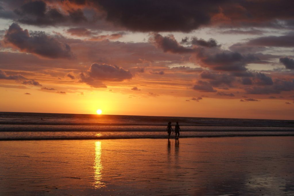 Dos personas caminando por la playa al atardecer en playa Dominical Costa Rica