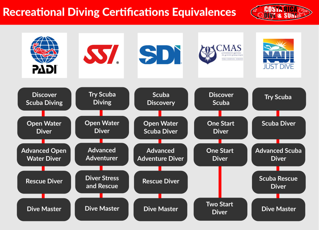 Todos los certificadores de buceo manejan estándares muy similares y están en capacidad de enseñar a los estudiantes de buceo los principios fundamentales de esta práctica.