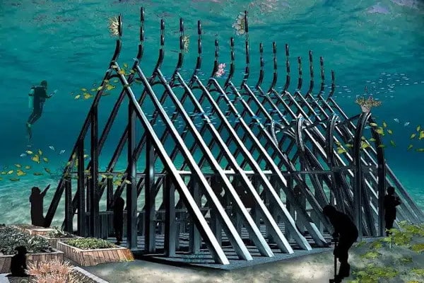 El sitio busca unir la conservación con el arte, construyendo santuarios de vida marina frente a la costa.