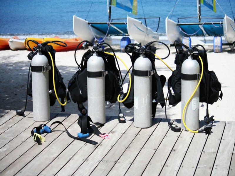 Sobre el costo, las tiendas de buceo suelen cobrar por cilindro.
